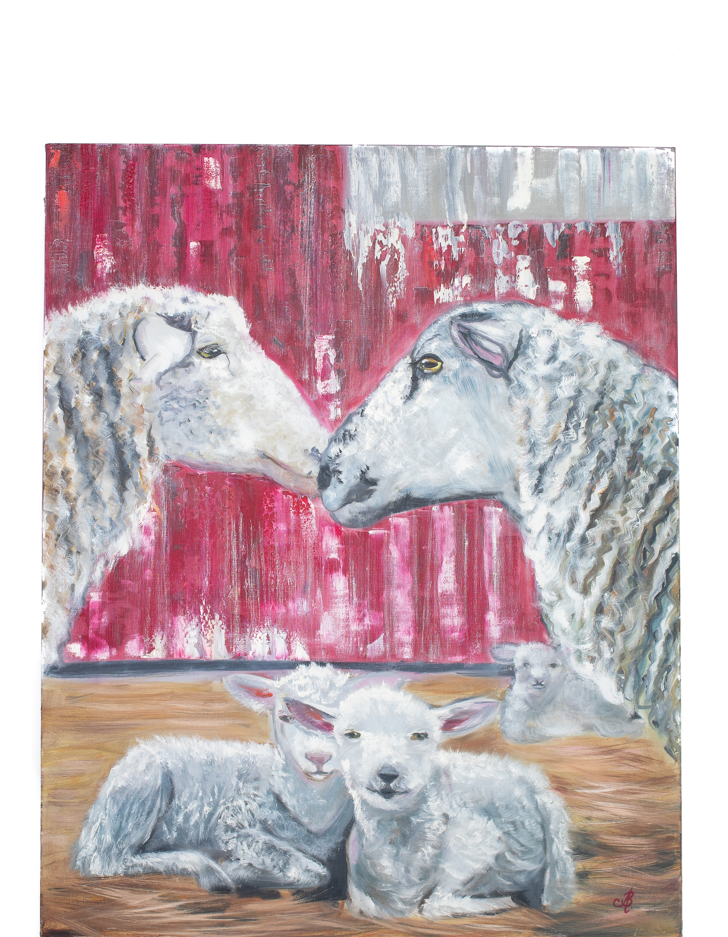 Madonna sheep with little lamb, Oil on Canvas
